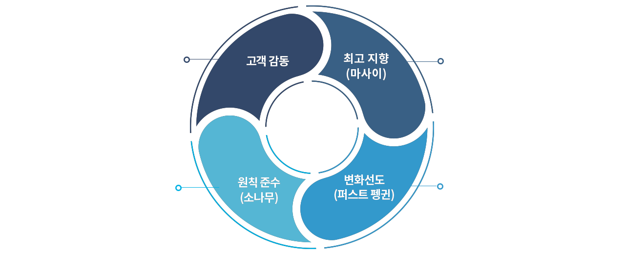 변화하는 환경에 맞추어 사회에서 존중받는 사람이 되고, 더불어 회사도 지속가능성을 높이기 위해 구성원 모두가 한결같이 건강한 생활양식, 업무양식, 행동양식을 공유하고 실천할 때, 우리 계열은 강한 기업으로서 흔들림 없이 나아갈 수 있습니다.
